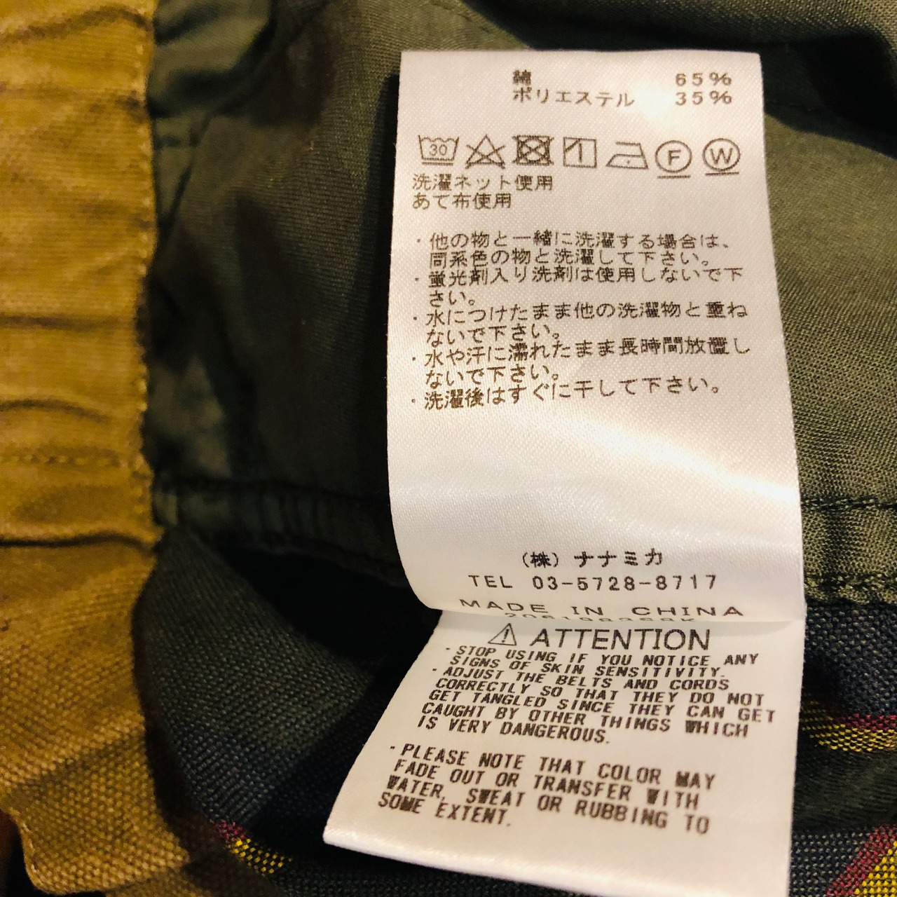□素材 : 65% cotton 35% polyester